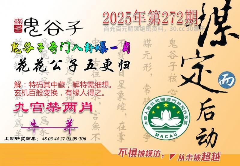 272期:澳彩鬼谷子【开:马36】 综合解:“花花公子五更归”寓意着在某个夜晚,这位花花公子在尽情享受之后,于五更时分回到了家中或某个地方 综合特肖:鸡马兔鼠狗猴龙 |