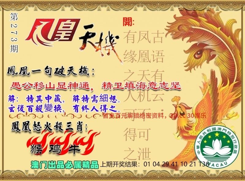 273期:九肖 | 猪鼠虎羊牛蛇马龙兔 | 虎04中 |